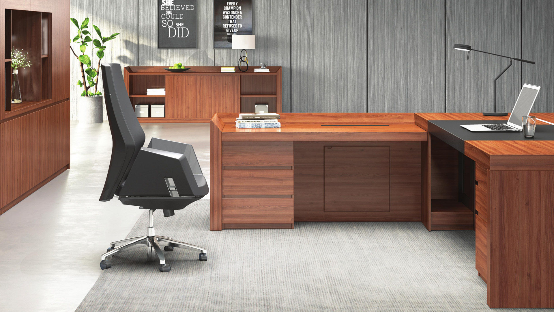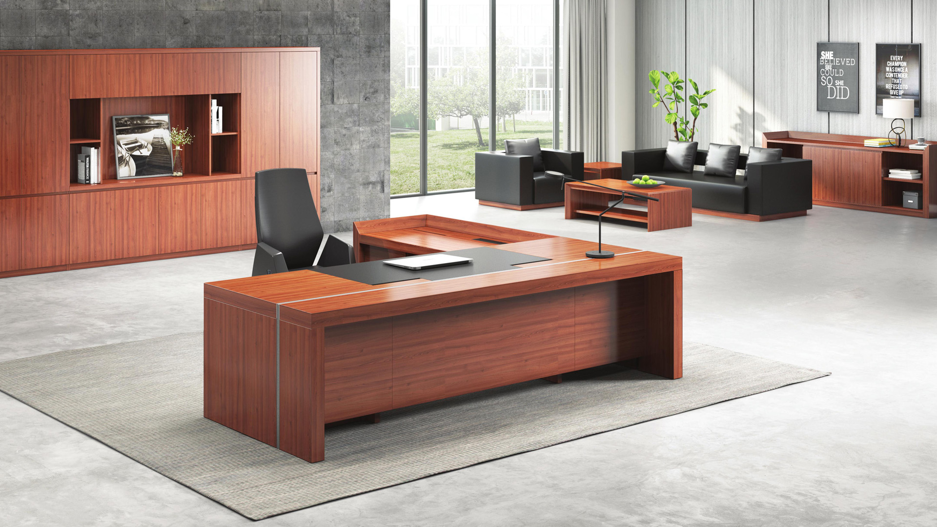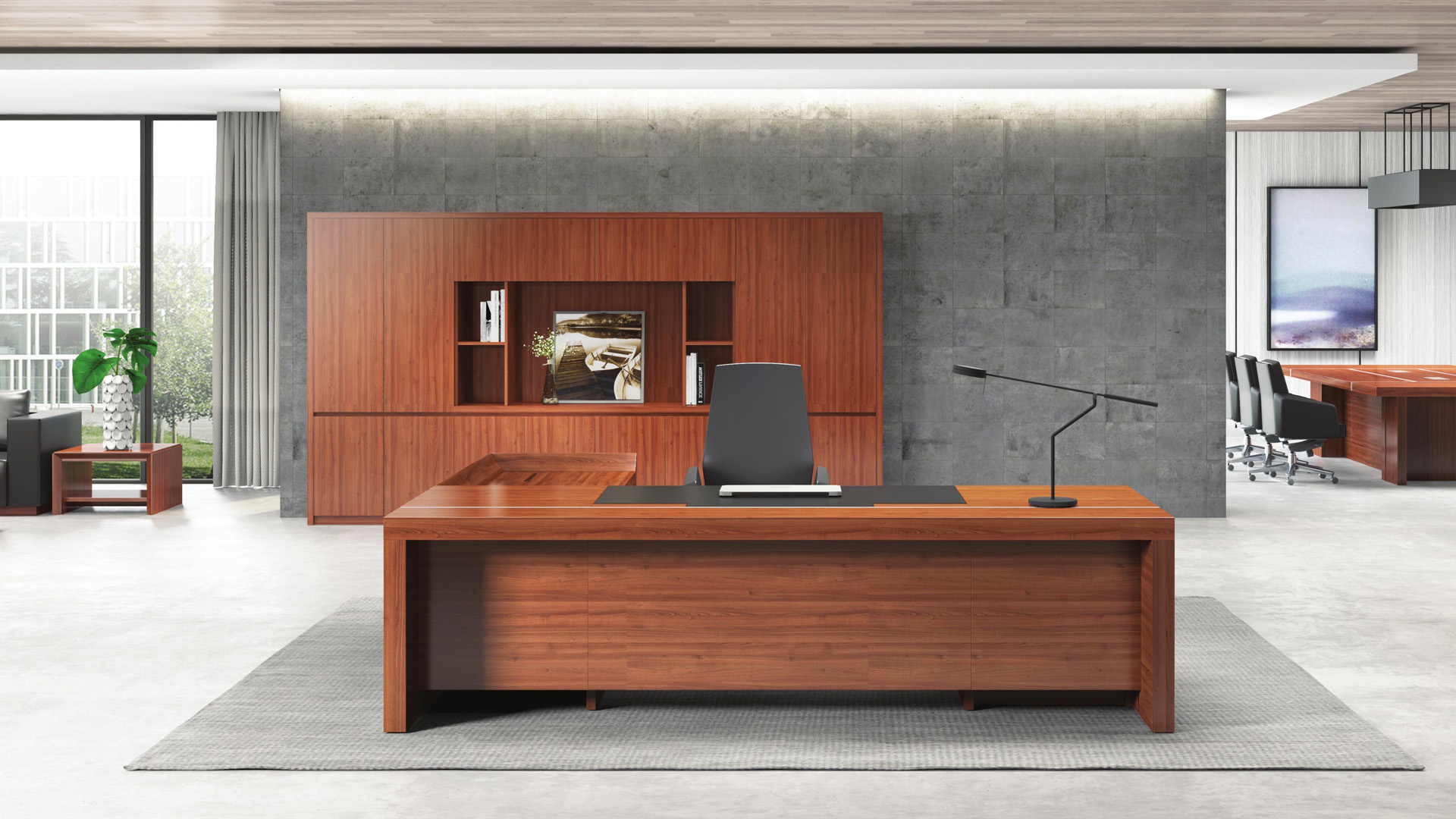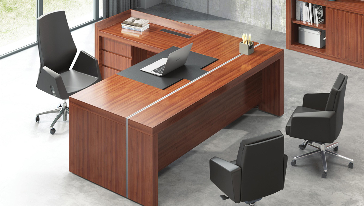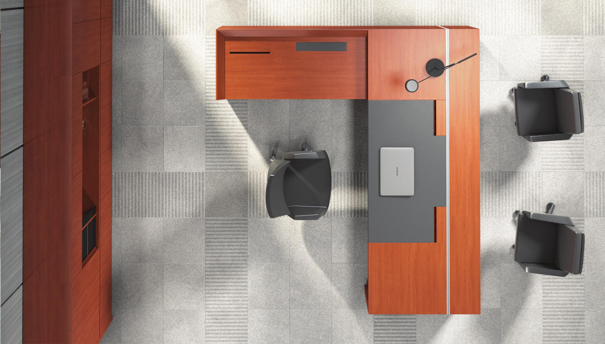 古色古香的色调,主台侧台错落有致,侧台桌面采用了超大尺度的设计,更加彰显拥有者的气度。