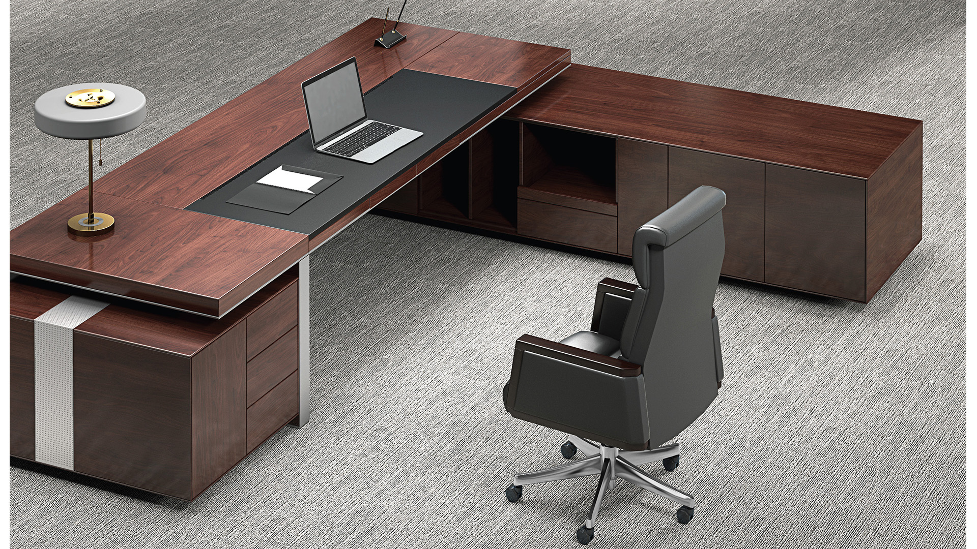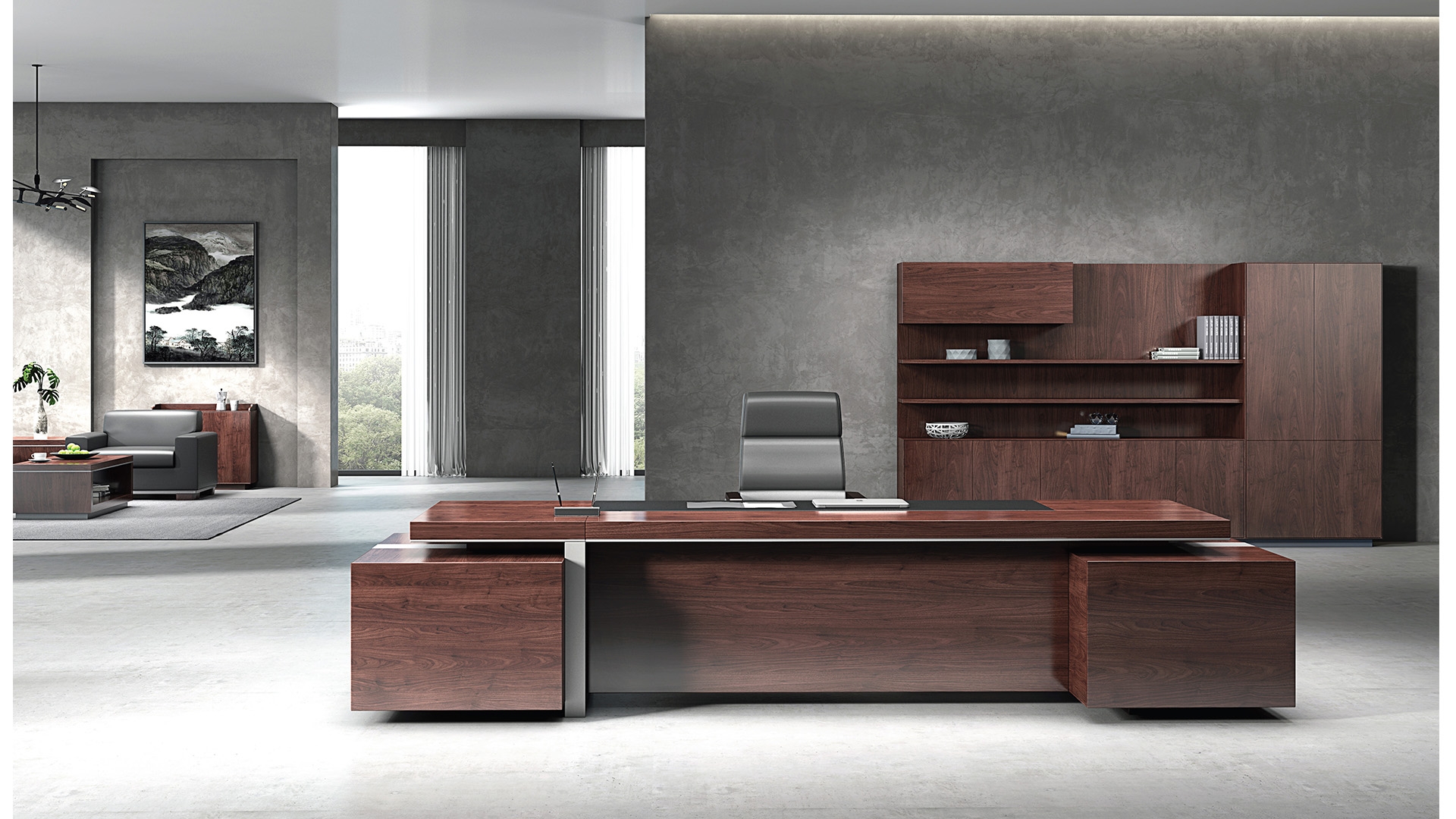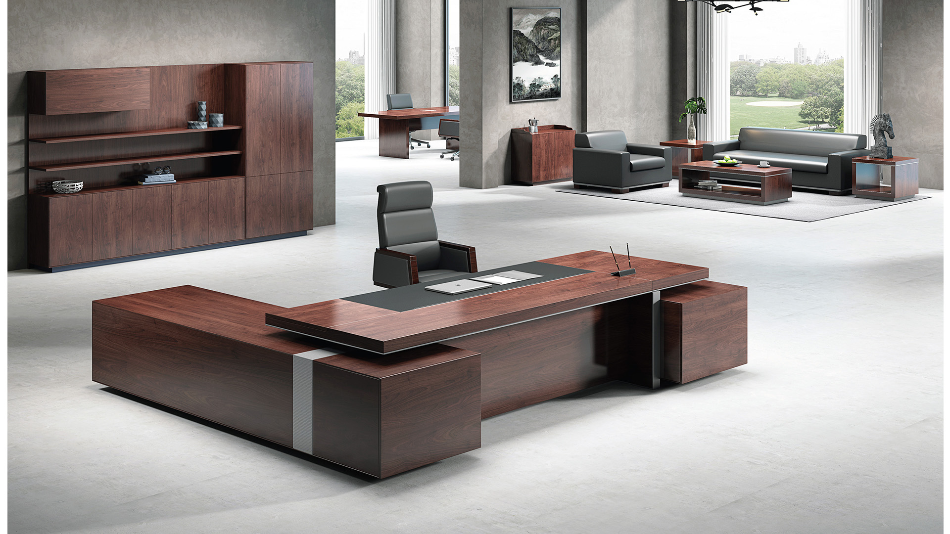 黑色皮质与胡桃木温润结合,色调沉稳而大气,线条遒劲而有力。